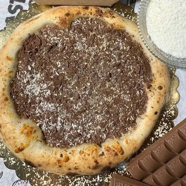 Creme de leite, muçarela, chocolate ao leite nestlé e coco ralado.